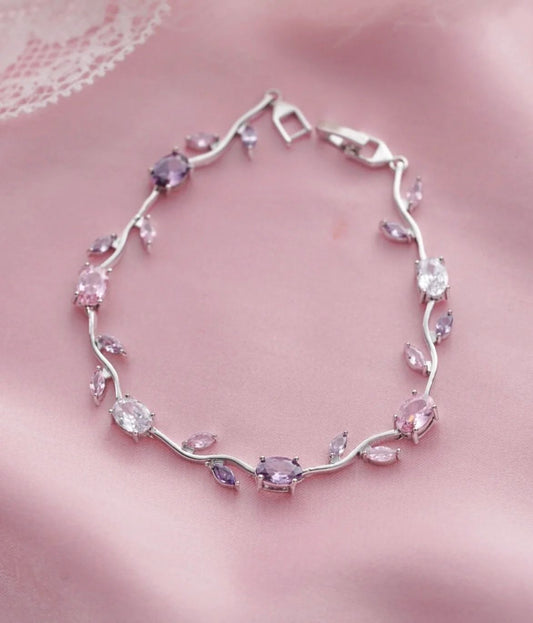 14 Ayar altın kaplama zirkon taşlı bileklik [Pembe Taşlı ]