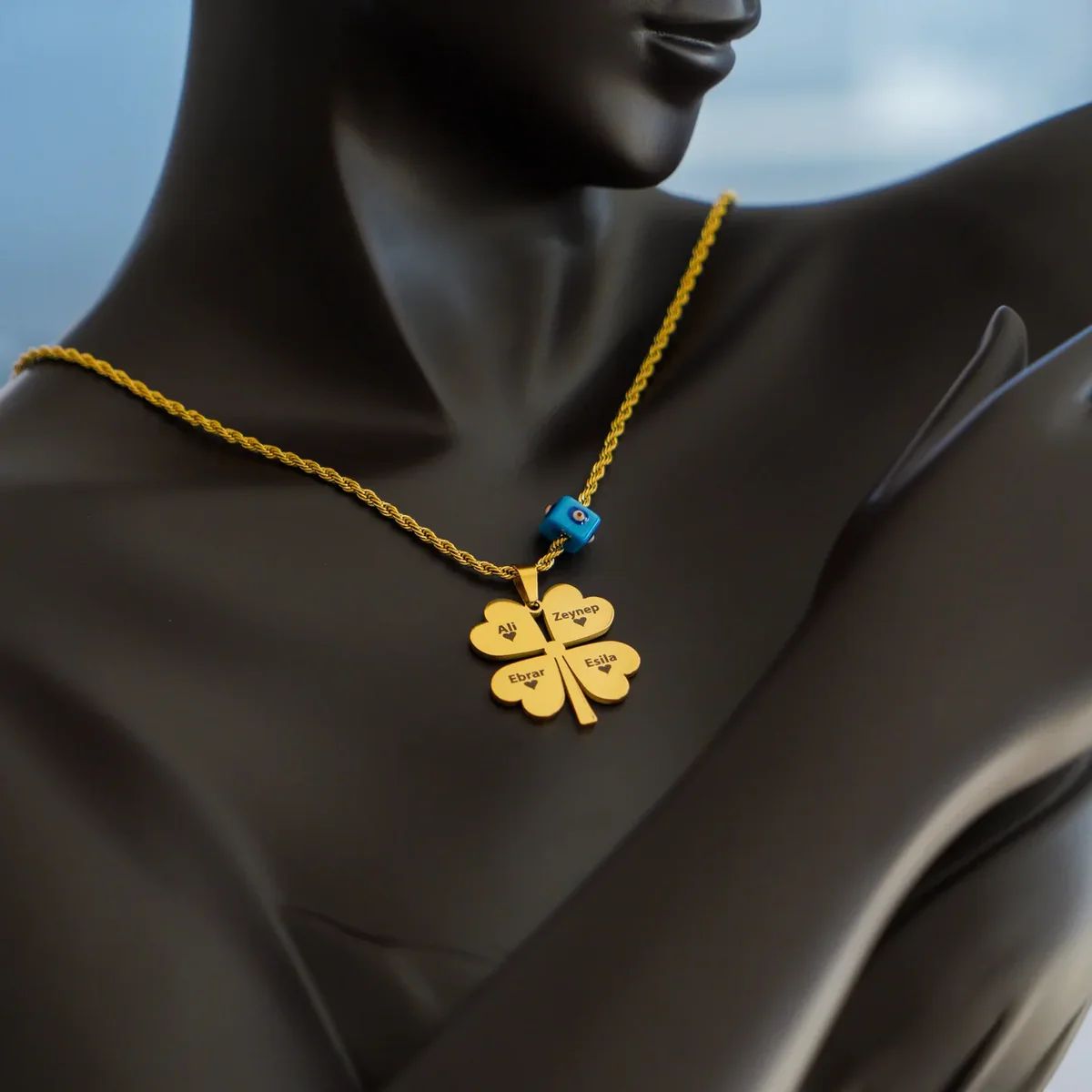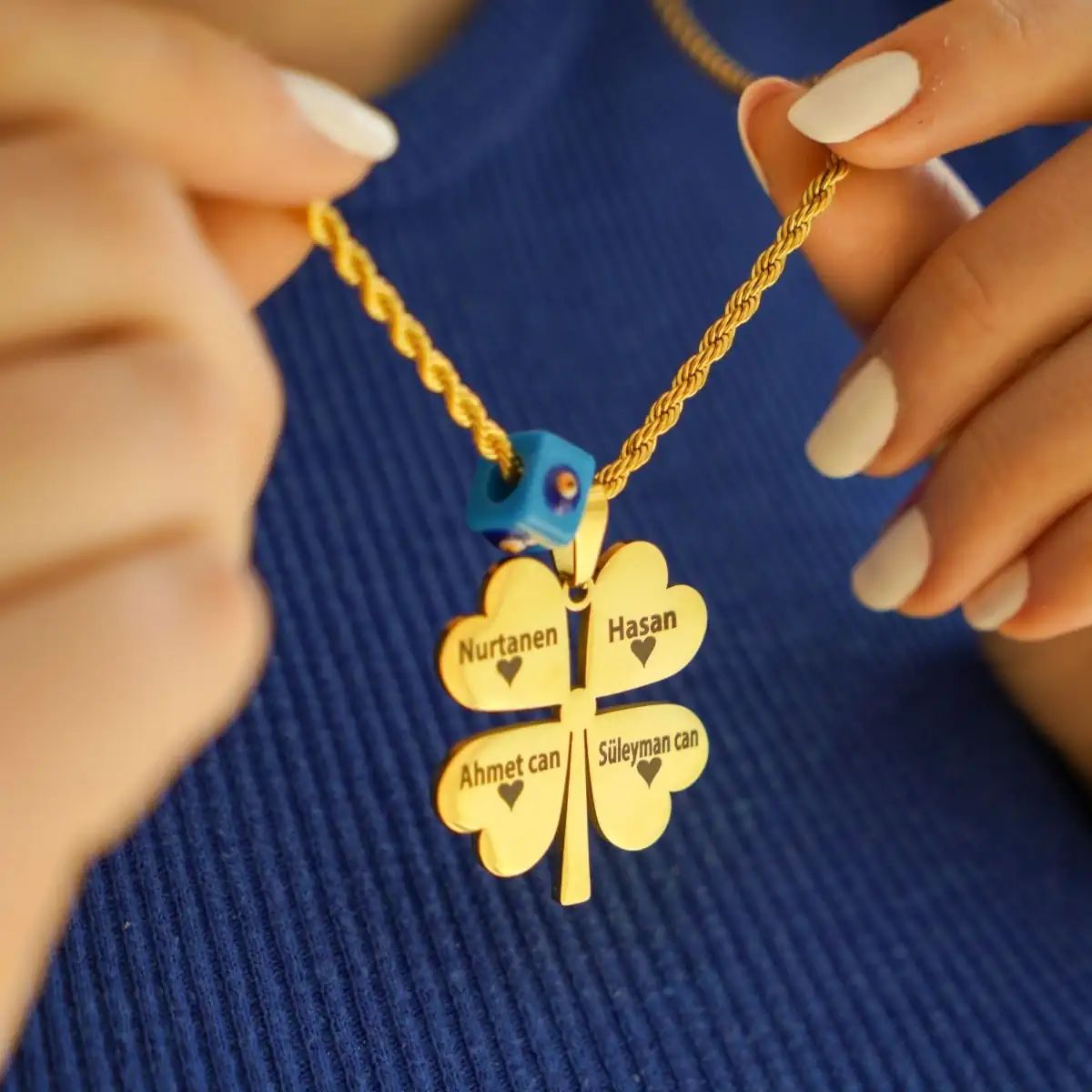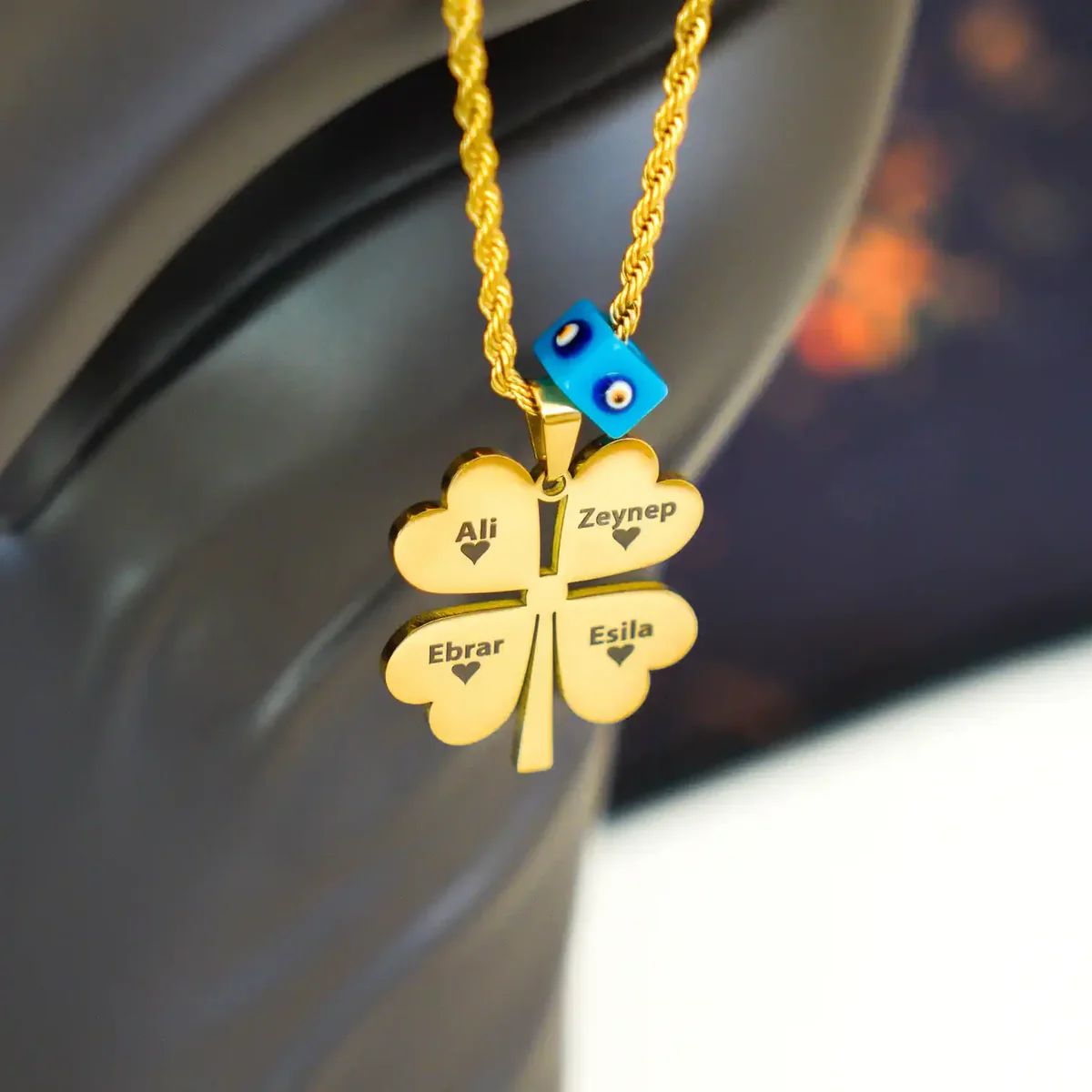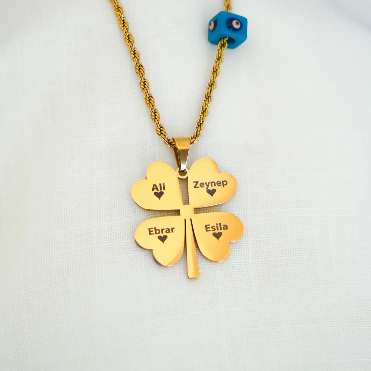 🔥 Yanan Aşk Kutusu – Kişiye Özel İsimli 4 Yapraklı Yonca Kolye