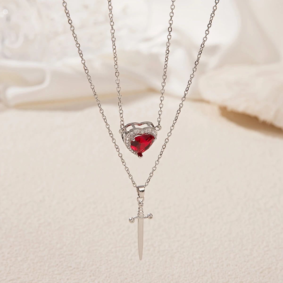 Kalp & Kılıç Çift Kolye Seti