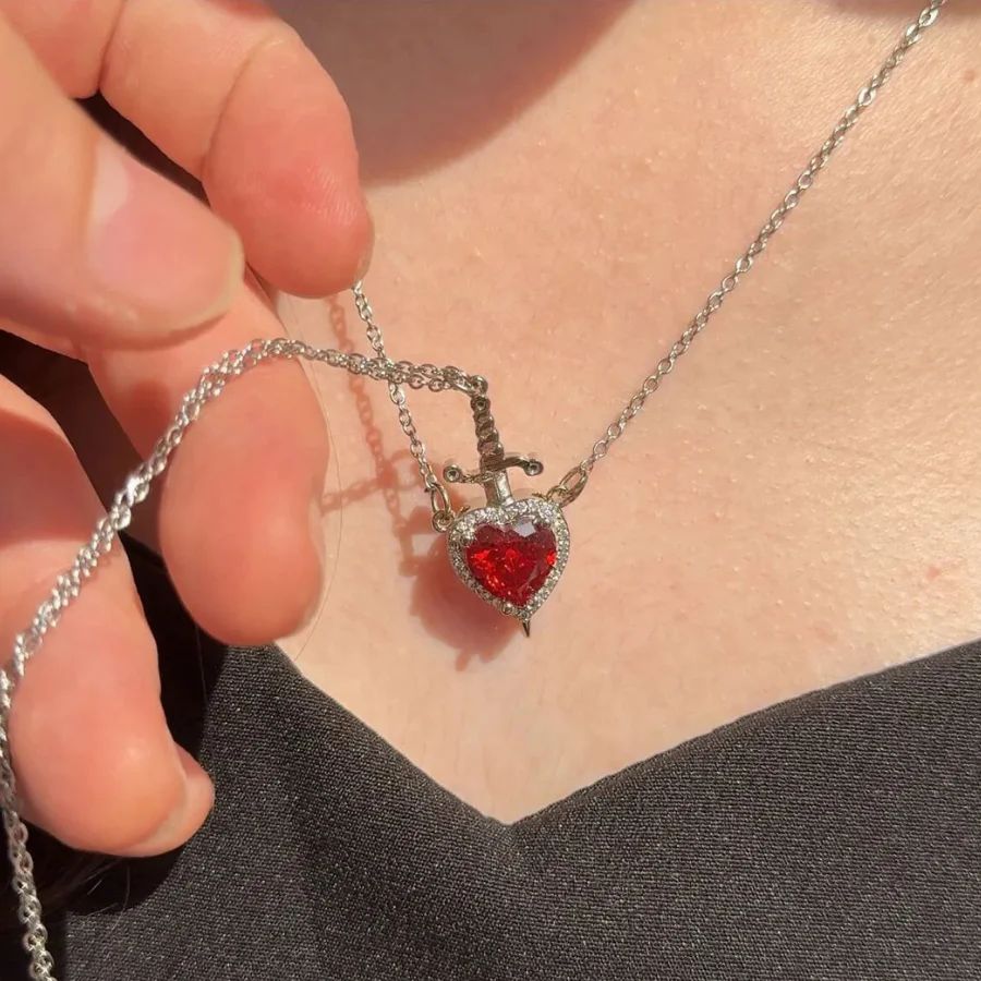 Aşk ve gücün sembolü bir arada… Bu özel çift kolyesi seti, kalp ve kılıç figürlerinin birleşimiyle anlamlı bir tasarım sunar. Kırmızı kalp taşı sevgi ve tutkuyu simgelerken, kılıç detayı korumayı ve bağlılığını temsil eder. İki kolye bir araya geldiğinde bütünleşen tasarımıyla çiftler için özel bir anlam kazanır.