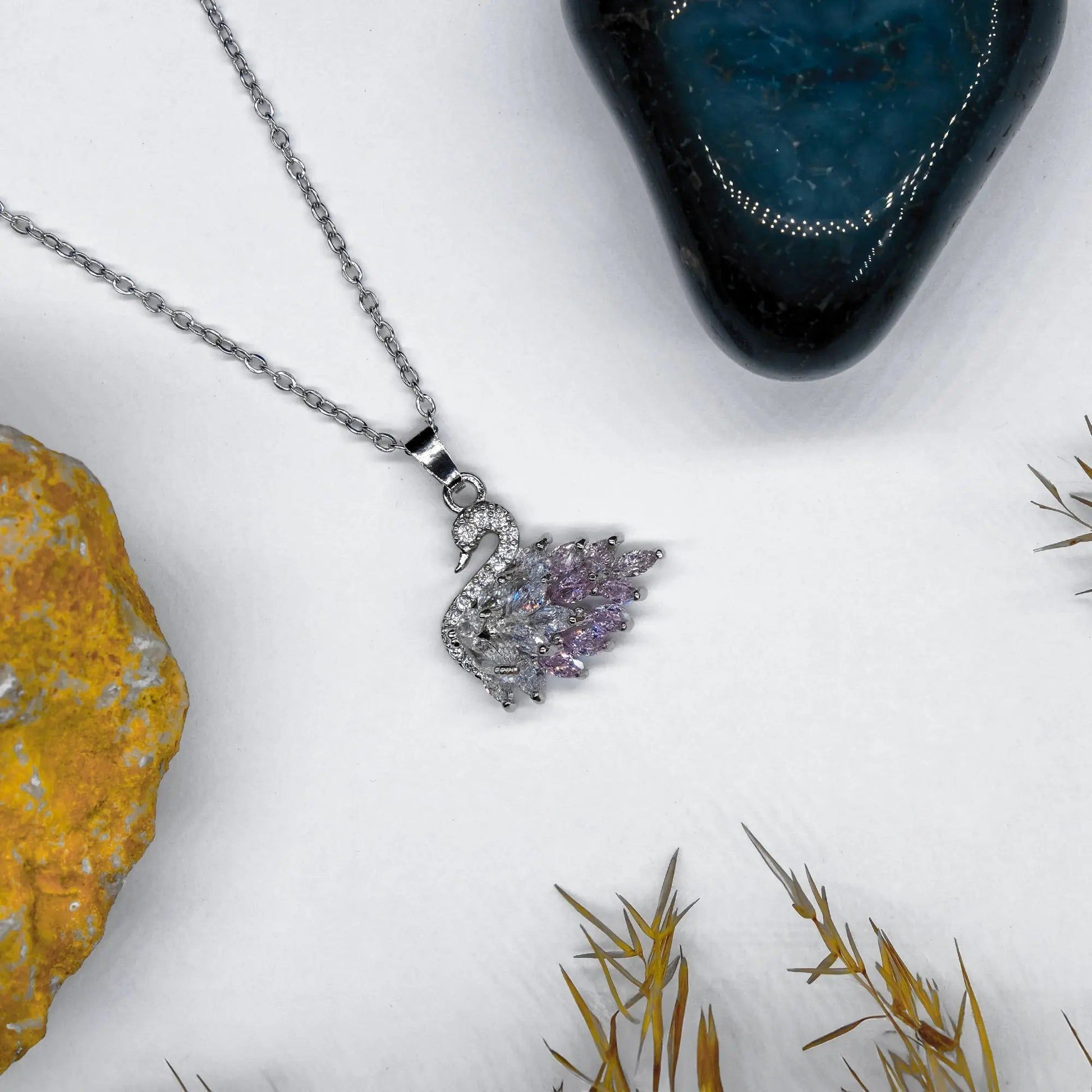 Zarif Kuğu Figürlü Taşlı Kolye